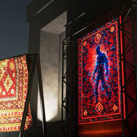 Dust.exe — это интерактивная световая инсталляция, в которой световой «ковёр» реагирует на удары по реальному ковру перед ним. Зритель превращается в участника: физическое действие вызывает вспышки, сбои и смену пиксельного узора. Ностальгия, игра и цифровая ткань соединяются в живом диалоге света, памяти и ритуала.