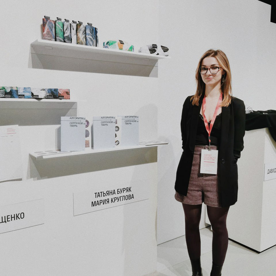 “На выставке молодого искусства была представлена наша совместная с Татьяной Буряк работа по универсальному туристическому алгоритму ознакомления с городами на примере Серпухова и Твери в формате зина. Кроме того, еще была живопись нашей сокурсницы Варвары Солод.